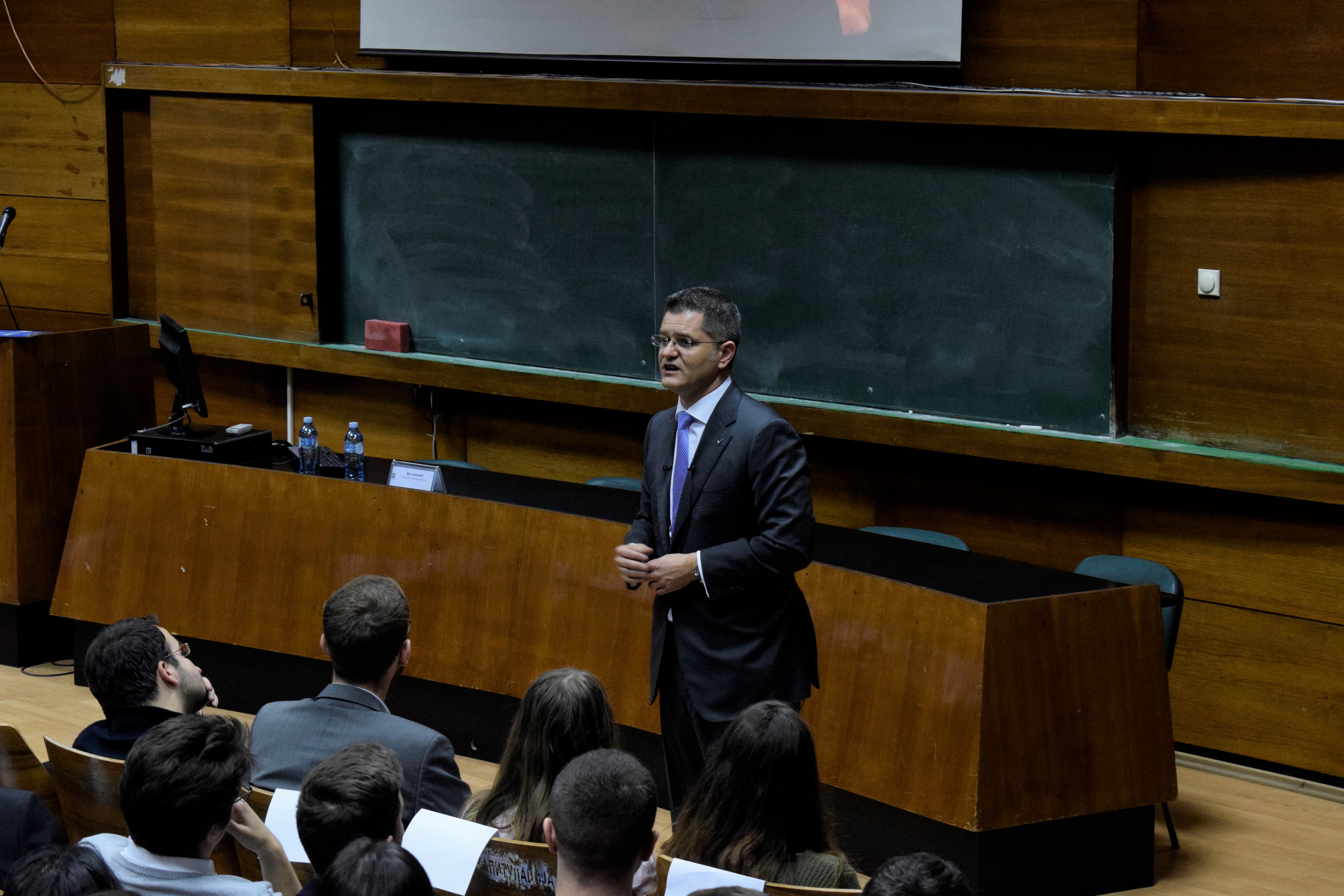 Тимска иницијатива младих (ТИМ) у сарадњи са Студентима за Уједињене нације на Факултету политичких наука, организовала је предавање на тему „Србија и Уједињене нације“. Предавање је одржао некадашњи председник Генералне скупштине Уједињених нација и председник Центра за међународну сарадњу и одрживи развој (CIRSD) Вук Јеремић.