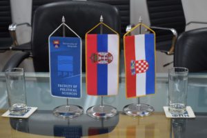 У име Факултета политичких наука присутнима се обратио проф. др Дарко Надић поручивши студентима да нема бољег пута за успостављање мира и сарадње, него кроз науку, културу и уметност. Професор је предочио да је политика у односу између Хрватске и Србије као некаква колатерална штета која се често јавља. „На овој дискусији говорићемо о науци и каква су то искуства Хрватске која ви, као будућност једног друштва, можете употребити за неговање односа између наше две земље“, рекао је проф. др Надић.