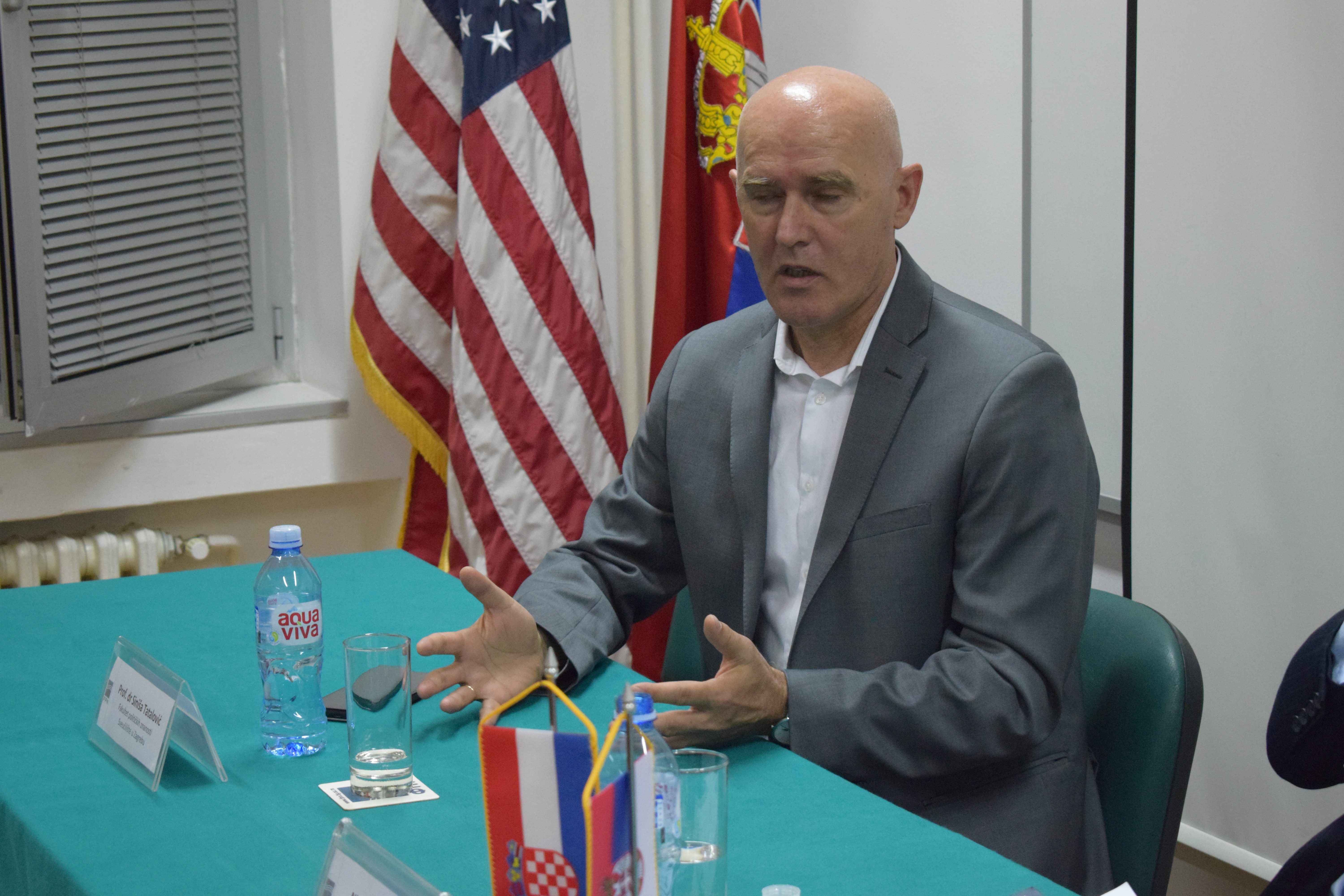 Професор др Синиша Таталовић рекао је да је Њ.Е. г. Гордан Бакота велики познавалац српско-хрватских односа, да ће ово предавање предочити присутнима на који начин Хрватска уважава статус чланице ЕУ, као и који су све то начини сарадње између Србије и Хрватске.