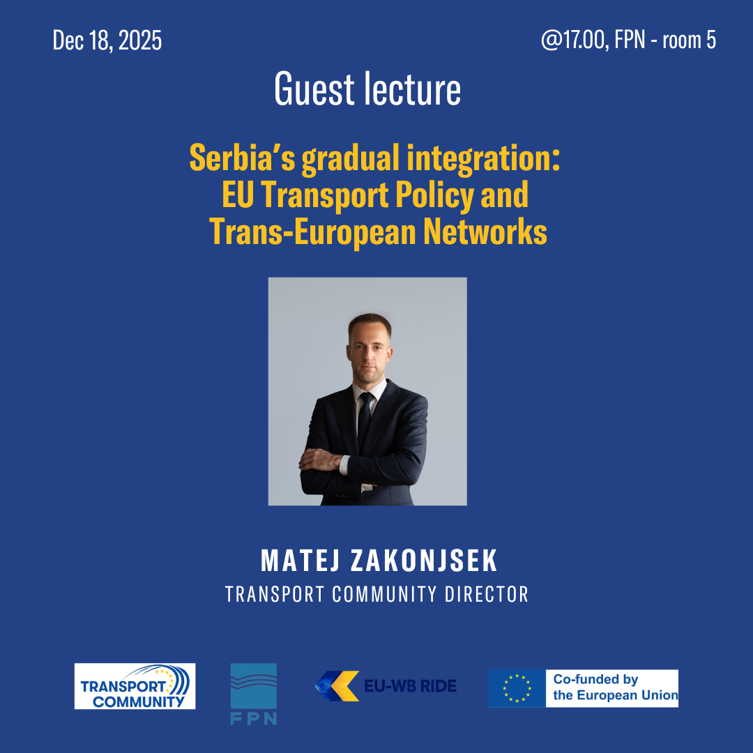 Факултет политичких наука има задовољство да позове студенте и истраживаче на предавање “Serbia’s gradual integration: EU Transport Policy and Trans-European Networks“, које ће се одржати у четвртак, 18. децембра 2025. године у 17 часова, у слушаоници 5.