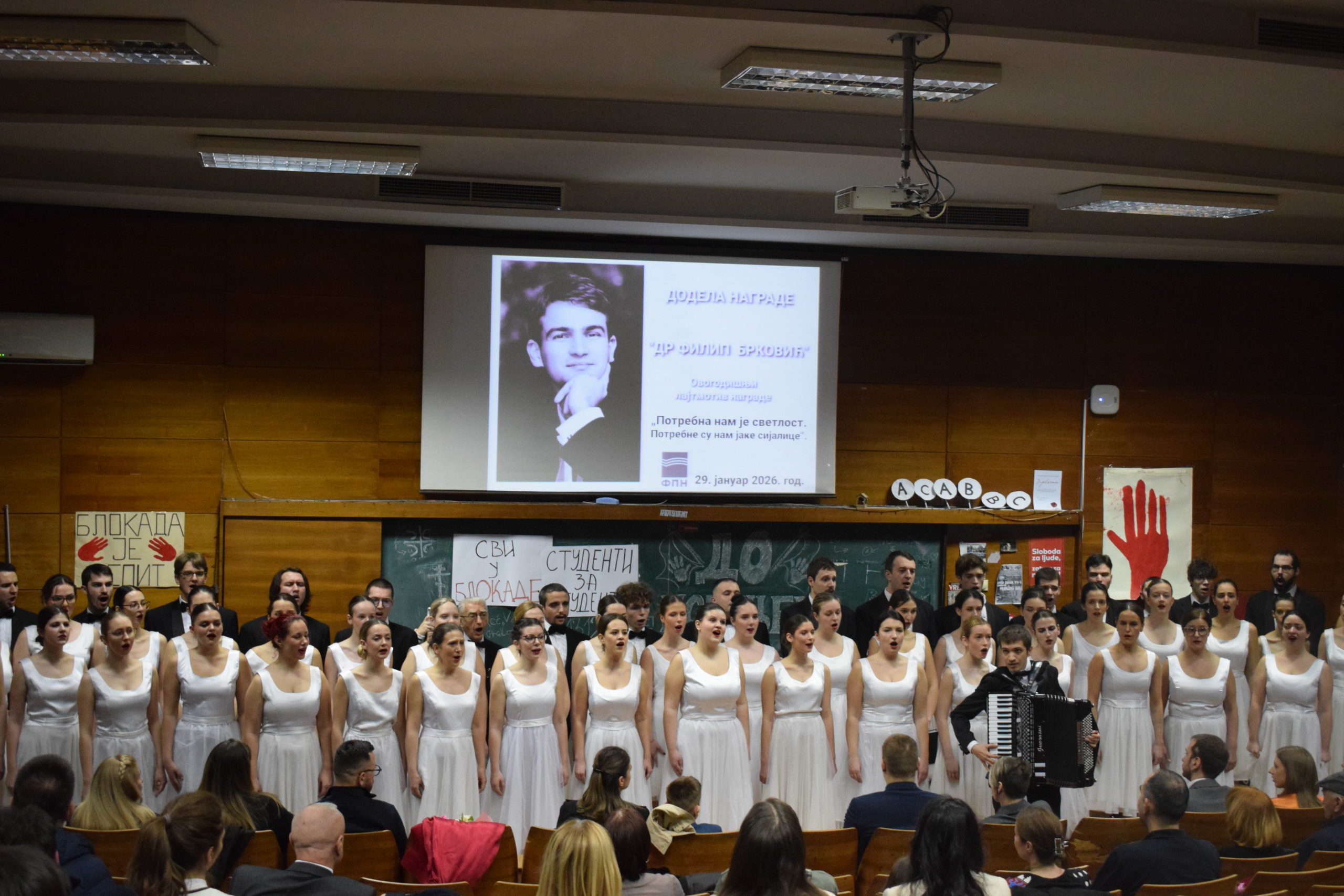 Свечану церемонију уприличио је академски хор ,,Обилић”, који је извео академску химну Gaudeamus Igitur и песму ,,Ово је Србија” под диригентском палицом Бојана Стојчевића.