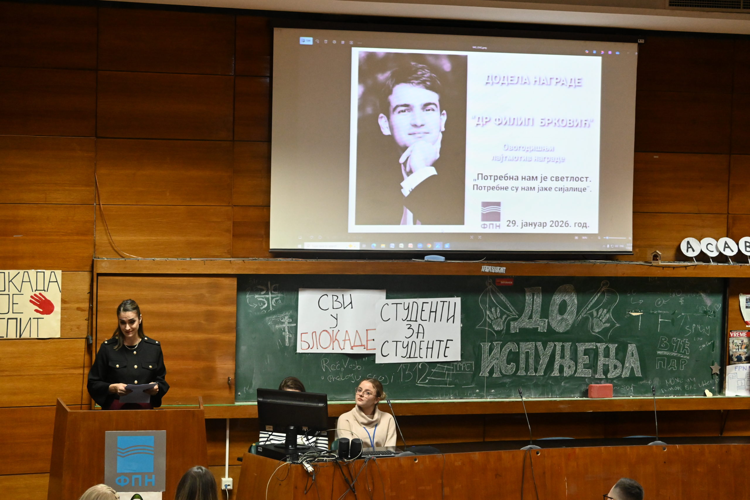 Церемонију је водила председница Студентског парламента Факултета политичких наука мастер студенткиња Ела Зековић.