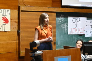 Церемонију доделе награде отворила је продеканка за научно истраживачку делатност Факултета политичких наука, проф. др Александра Крстић. Она је истакла да је овогодишњи избор био изузетно тежак, јер су пристигле пријаве студената са различитим образложењима због чега свако од њих заслужује награду. „Ове године смо одлучили да награду доделимо једној изузетној студенкињи која је својим залагањем за демократију, борбом за институције и указивањем невероватне солидарности мотивисала и своје колеге, а и нас професоре да будемо бољи“, изјавила је продеканка Крстић.